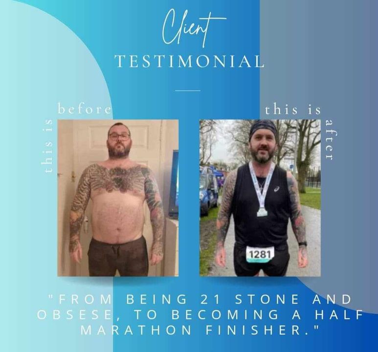 See how our client went from 21 stone to a proud half-marathon finisher-imagine what you can achieve!